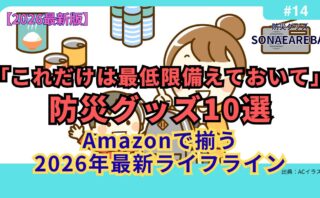 防災グッズ「これだけは最低限備えておいて」防災グッズ10選|Amazonで揃う2026年最新ライフライン 2026年最新!「これだけは最低限備えておいて」防災グッズ10選をAmazonで揃える。飲料水・モバイルバッテリー・簡易トイレなど命を守る必須アイテムを解説。72時間自分で守る!3日サバイバル術。 2026.02.06防災グッズ防災豆知識